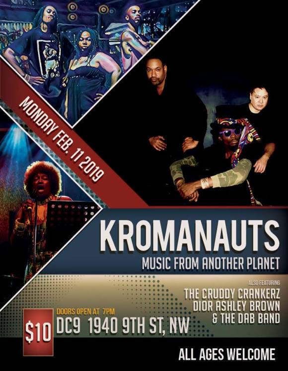 Happy 15th Birthday to DC9! The perfectly-sized live music and dance club at 9th & U is celebrating with another week of great shows and DJ nights. Tonight they host the upbeat reggae band Kromanauts, along with Dior Ashley Brown and The Cruddy Crankers.